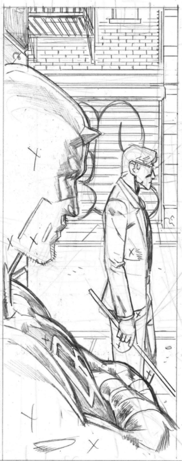 Love this so much! You’ve touched on something I’ve always obsessed about whenever artists draw (real) Matt—who has radar sense but been sightless since teenage—that his body language and actions should be like that of a blind man. To give an obvious comparison: Pacino in Scent of a Woman. The way Matt should look slightly away from someone he’s talking to. The tentative way he walks—which he’ll be careful to keep up with the method acting so as not to give away his secret identity. This sort of rigorous attention to detail is what separates you from many other artists, Mike! Happy holidays to you and yours…